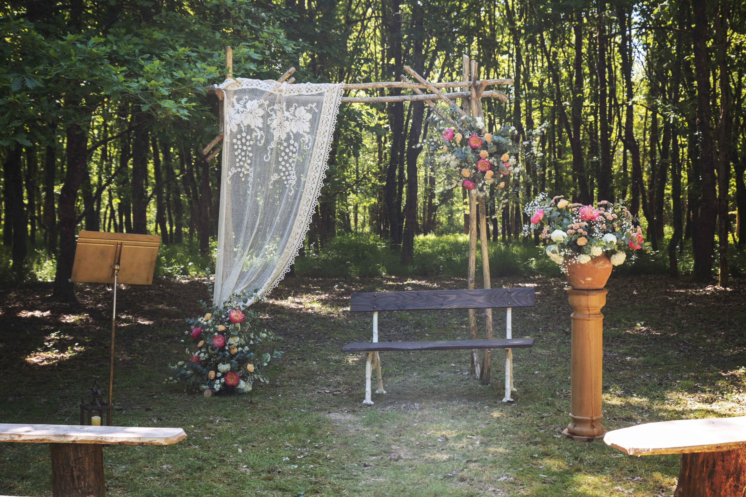 Joli banc romantique qui peut être placé dans un coin confort ou servir de décoration de cérémonie, de décoration de jardin ou d’agrément.