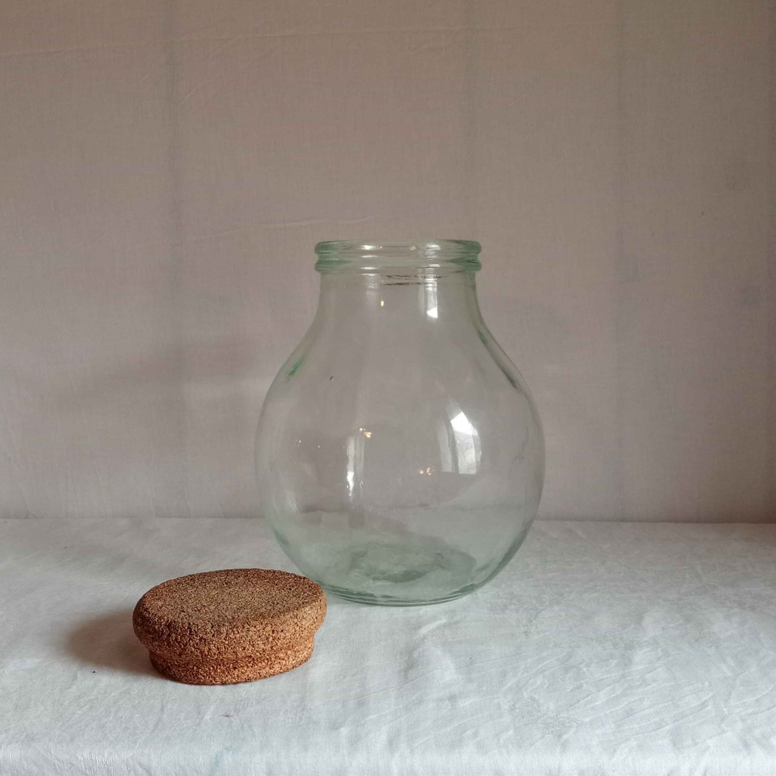 Bonbonne en verre avec couvercle. Ce design épuré et naturel est parfait comme élément décoratif ou pour une utilisation pratique.