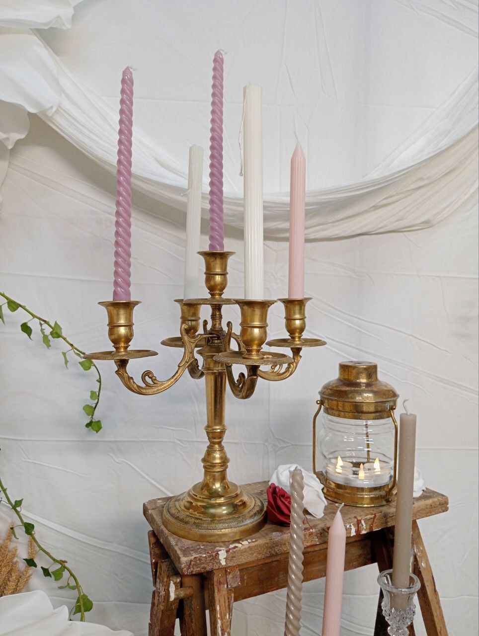 Location à l’unité de chandelier doré, plusieurs modèles et hauteurs disponibles en fonction de vos envies.
