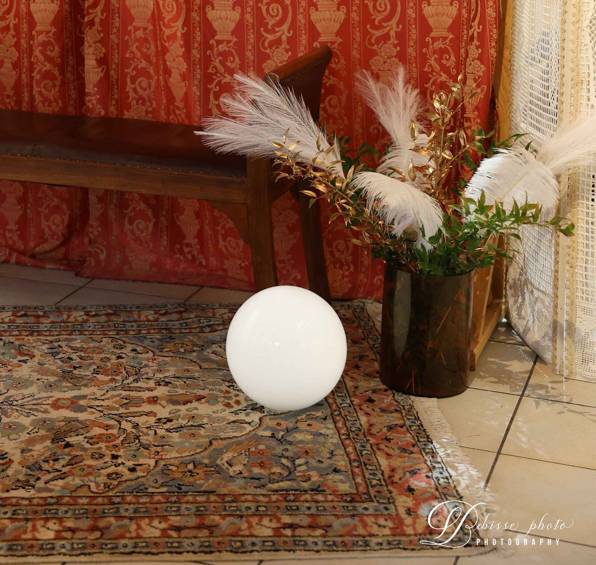Ces lampes globe en opaline sont à louer avec leur ampoule LED autonome, qui fonctionne sur pile. Elles vous permettront de créer une ambiance chaleureuse à la nuit tombante.
