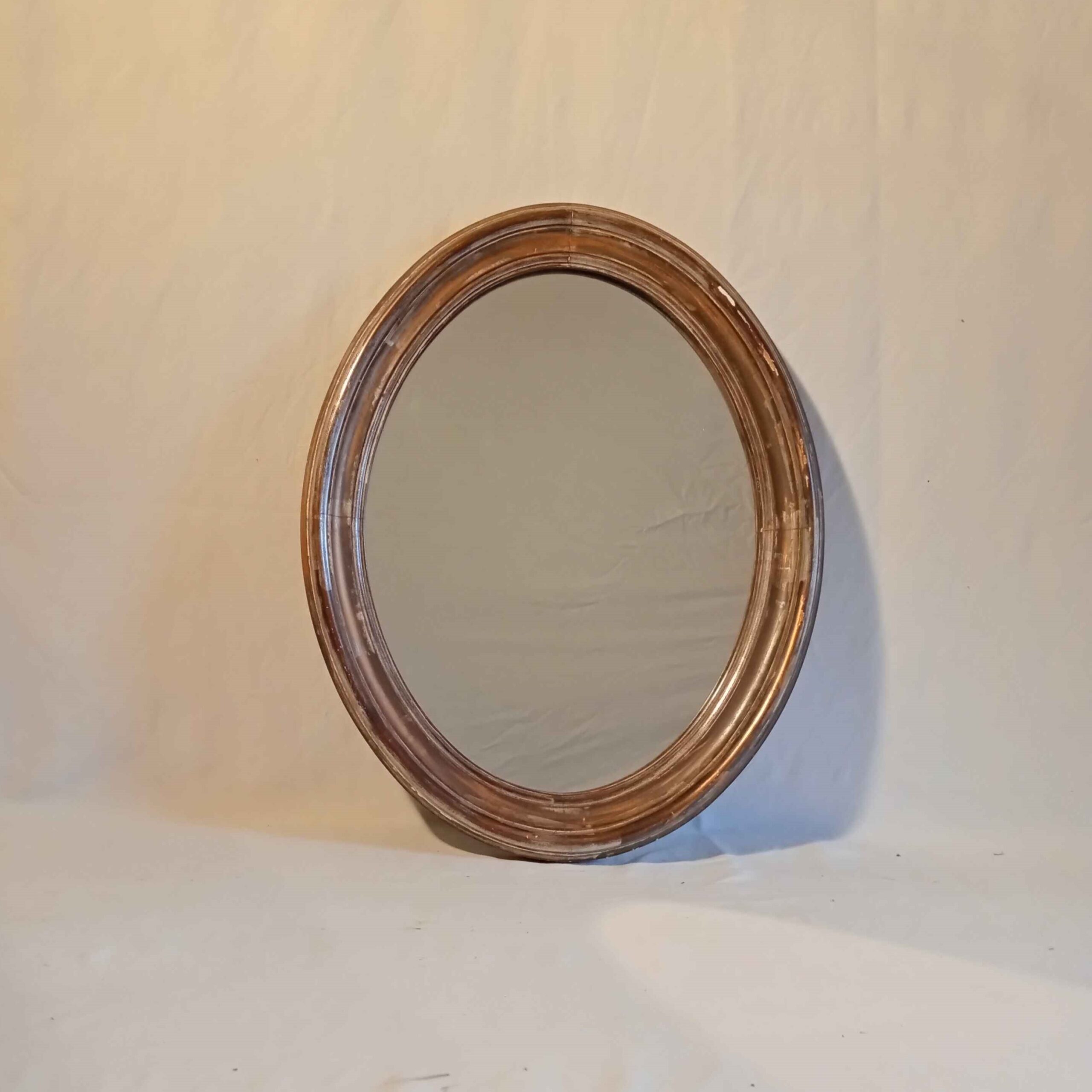 Miroir ovale argenté et doré. Ce beau miroir aux couleurs uniques et chatoyantes rendra élégant n’importe quelle décoration ou décor. Il est à adosser à un support.