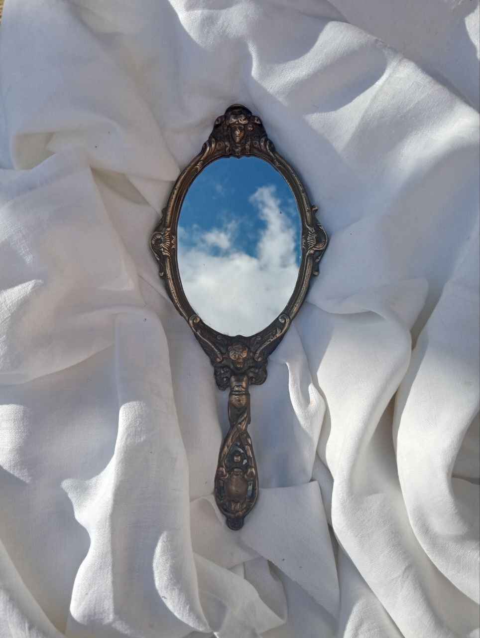 Ce miroir à main en bronze vous permet de prétendre être “Belle” de la “Belle et la bête” pendant quelques instants. Sa beauté se passe de davantage de commentaires.