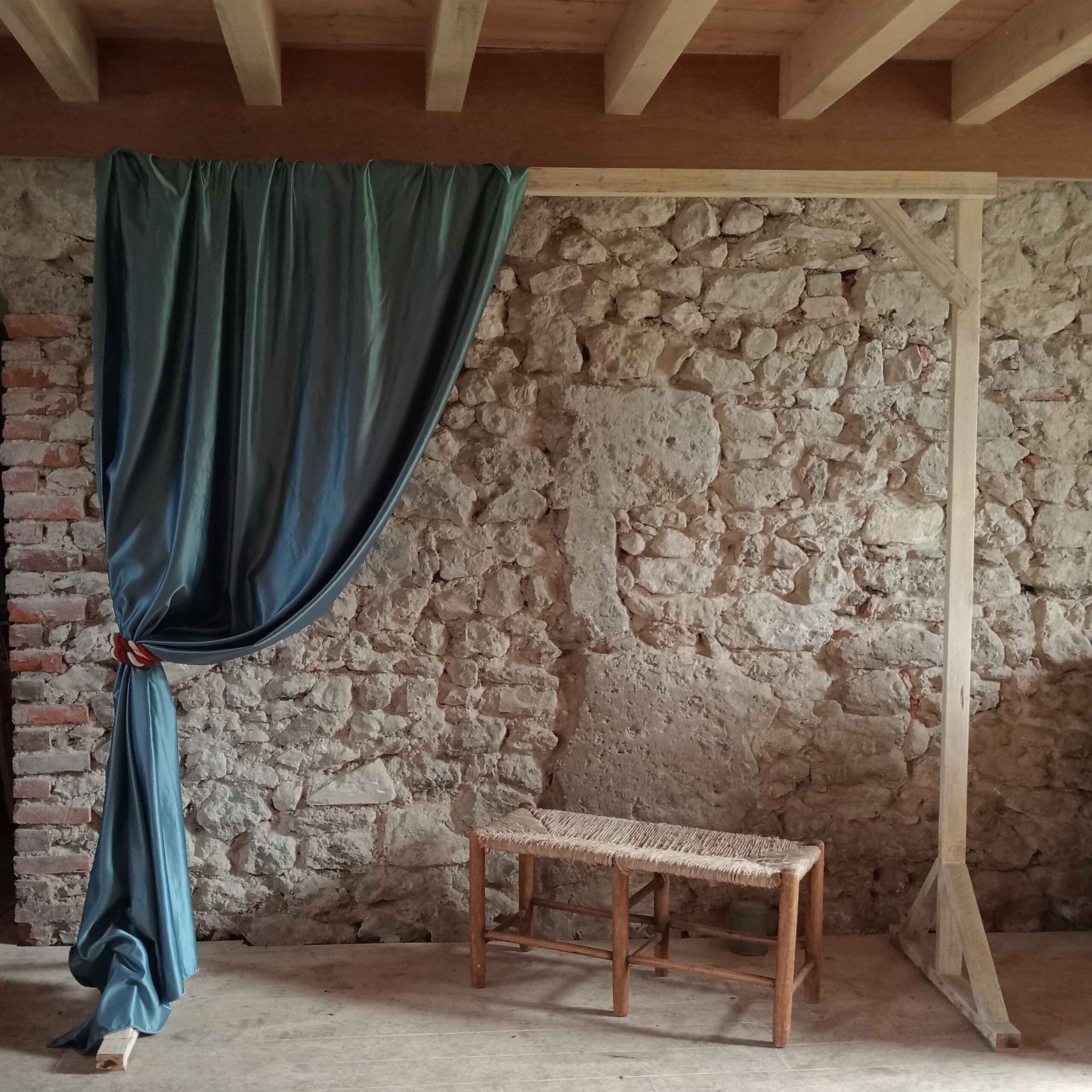 Rideau en satin bleu, fluidité et éclat pour des événements élégants