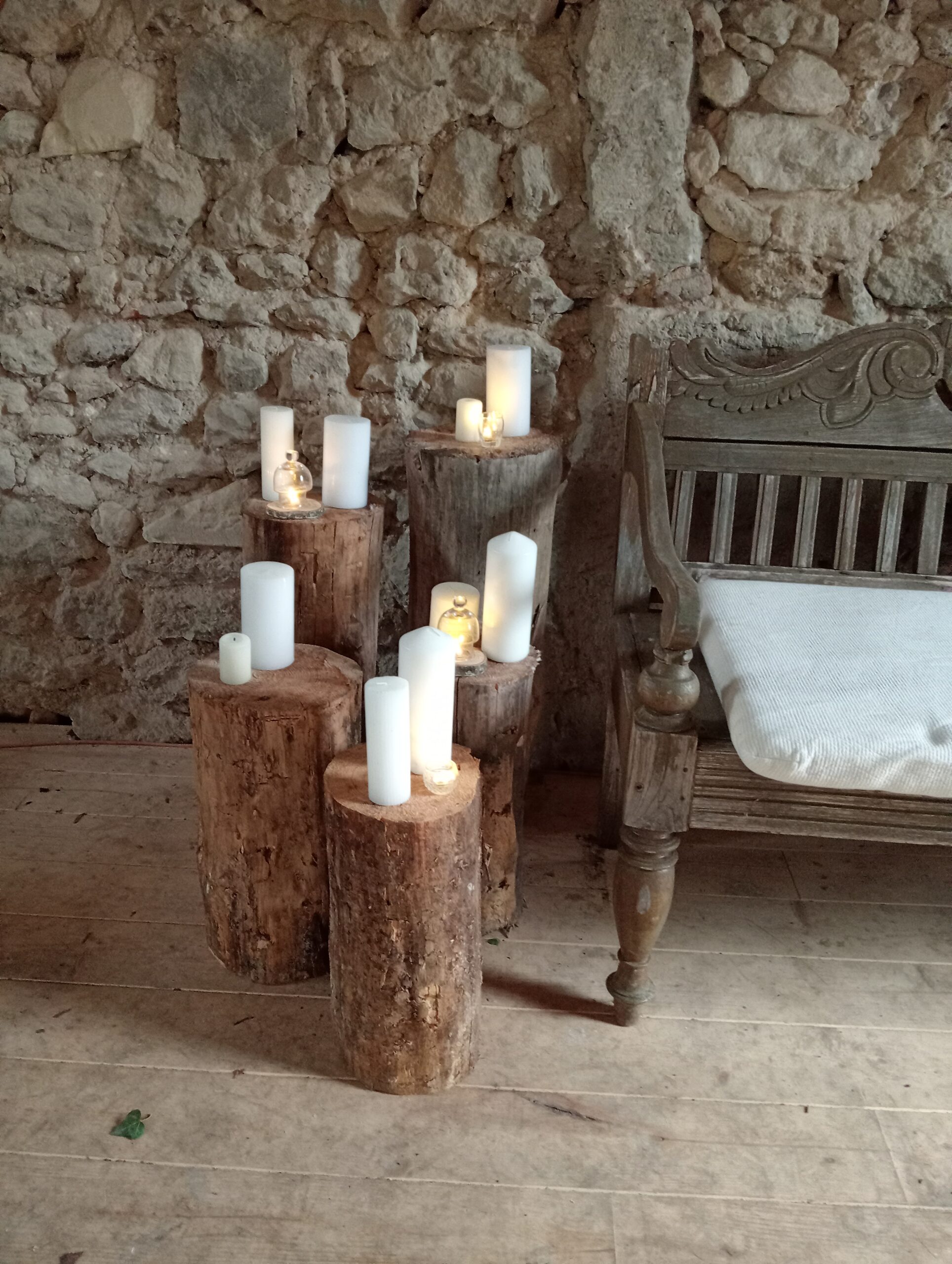 Rondins de bois blanc haut de 40, 60 ou 80 cm de hauteur.