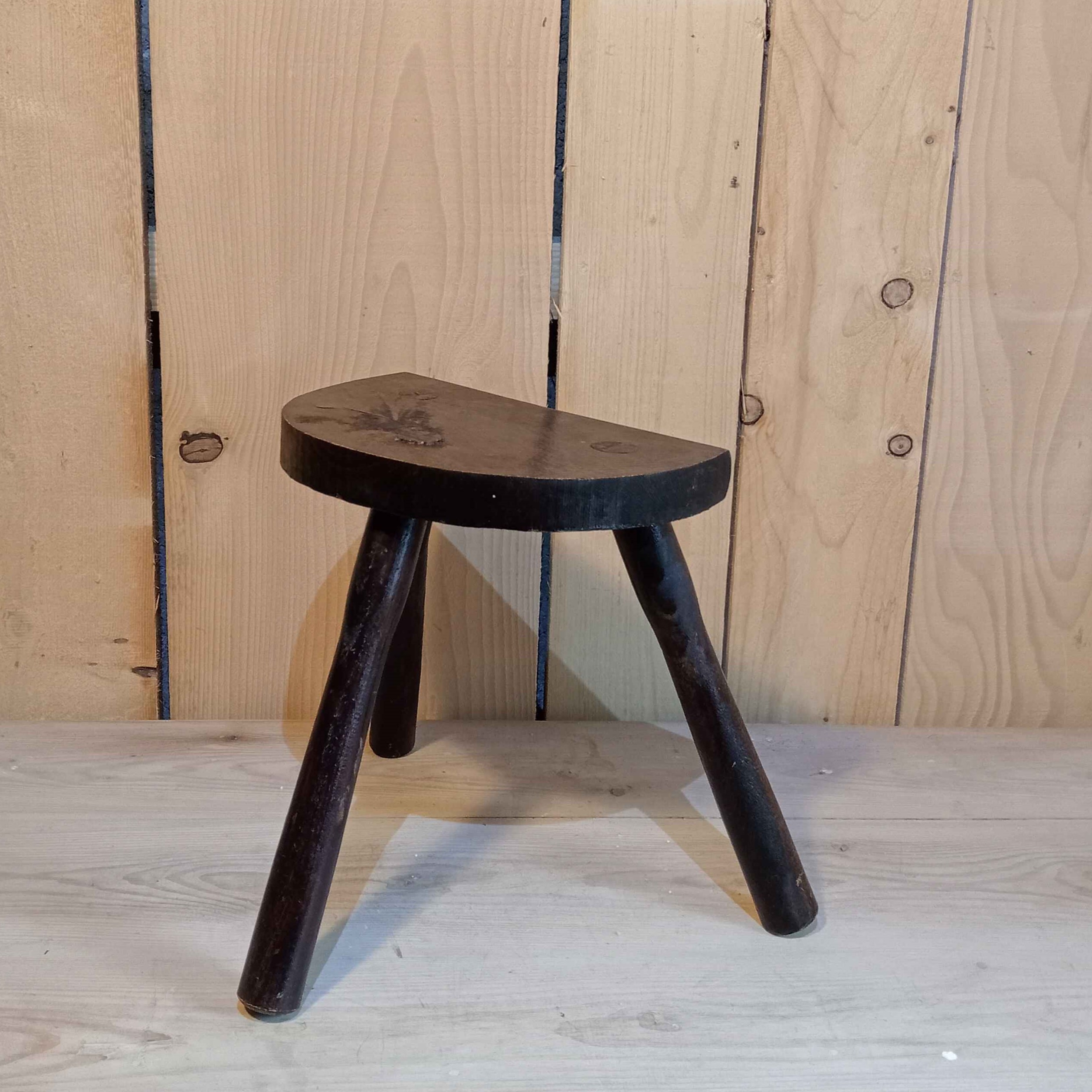 Tabouret à 3 pieds. Ce tabouret compact et rustique est idéal comme assise d’appoint ou pour ajouter une touche naturelle à votre décoration.
