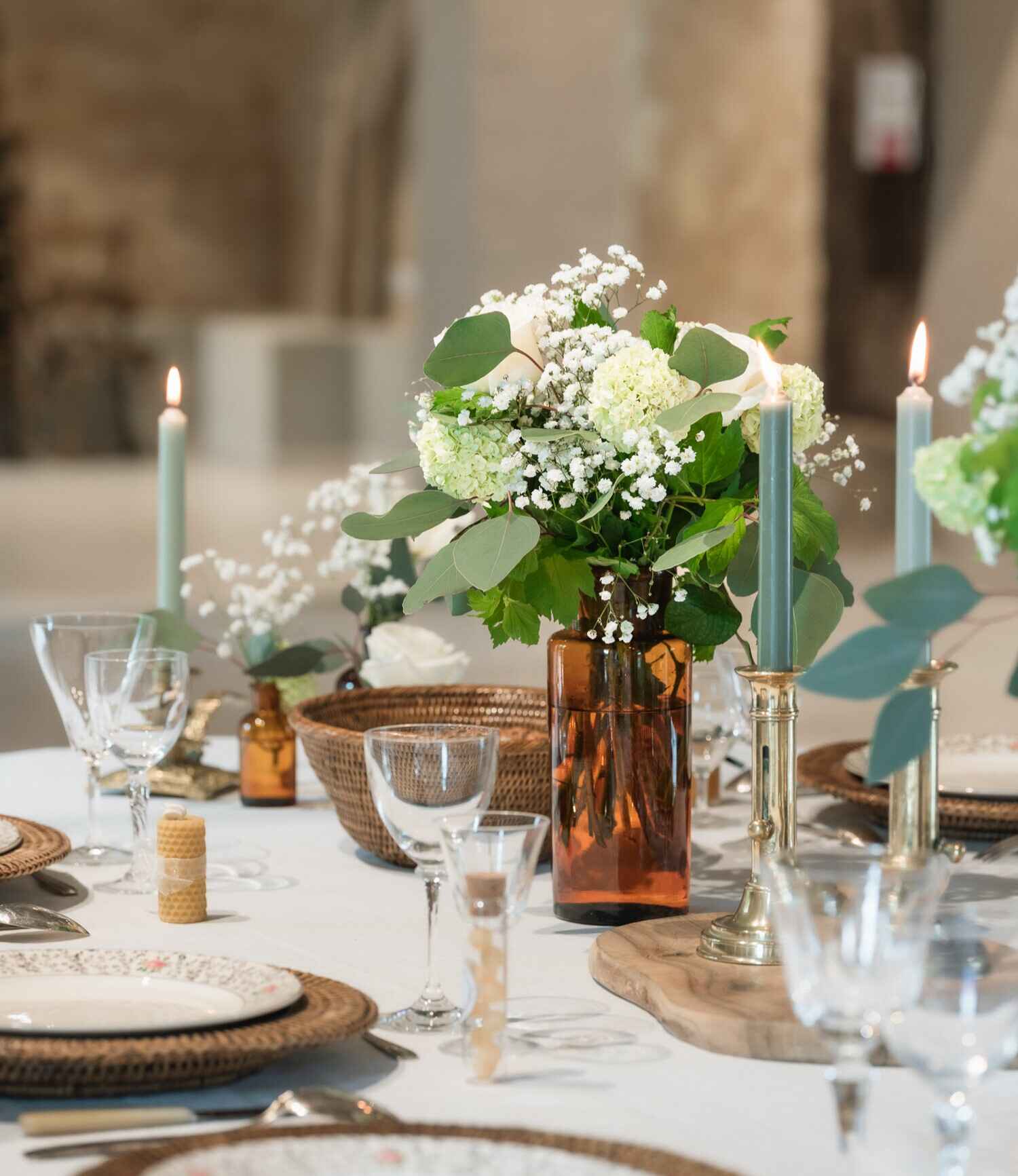 Verrerie ocre grand format disponible pour habiller vos tables.