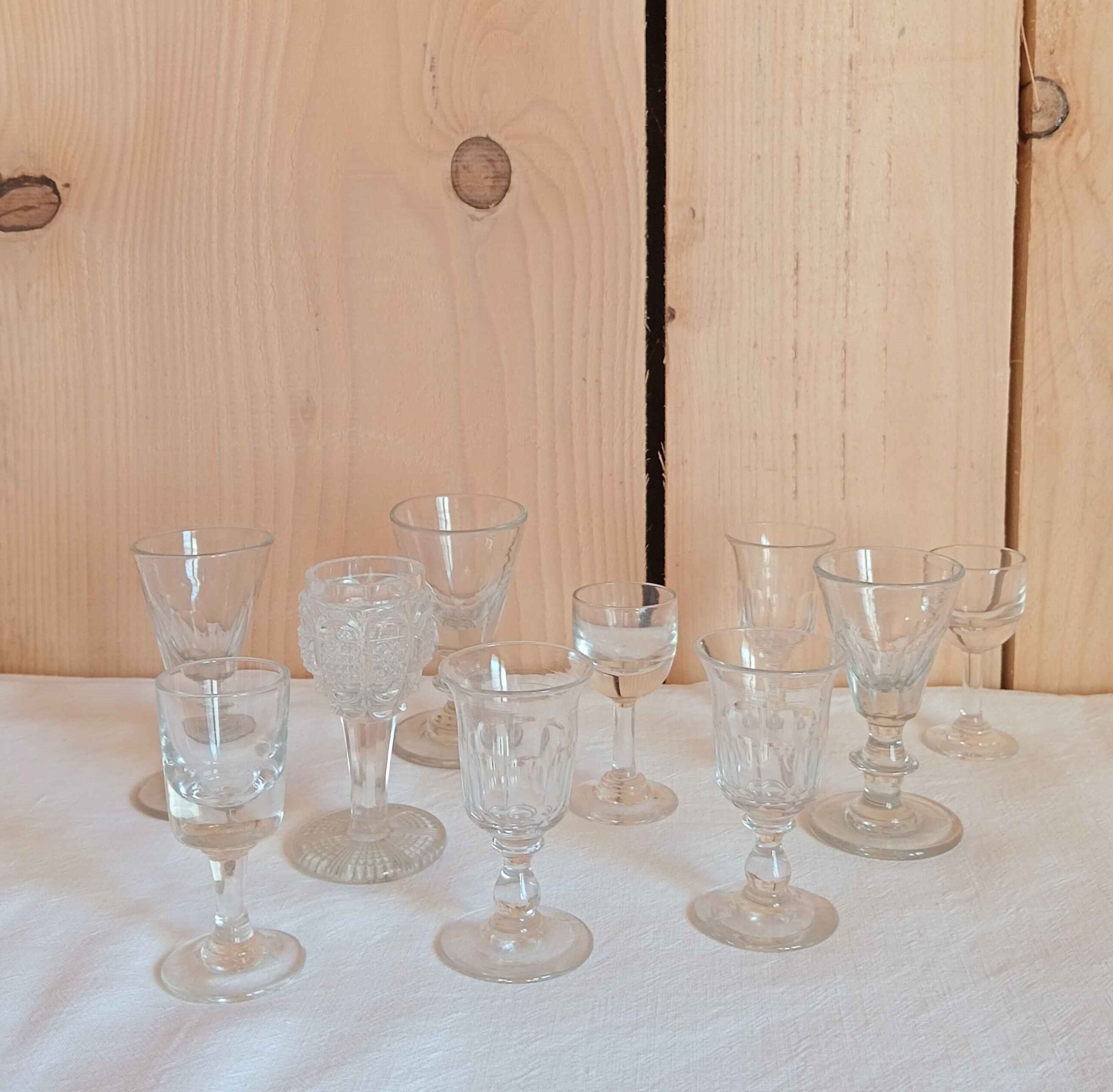Verres à digestif dépareillés avec pied, parfaits pour un style éclectique et raffiné. Idéals pour une table conviviale.