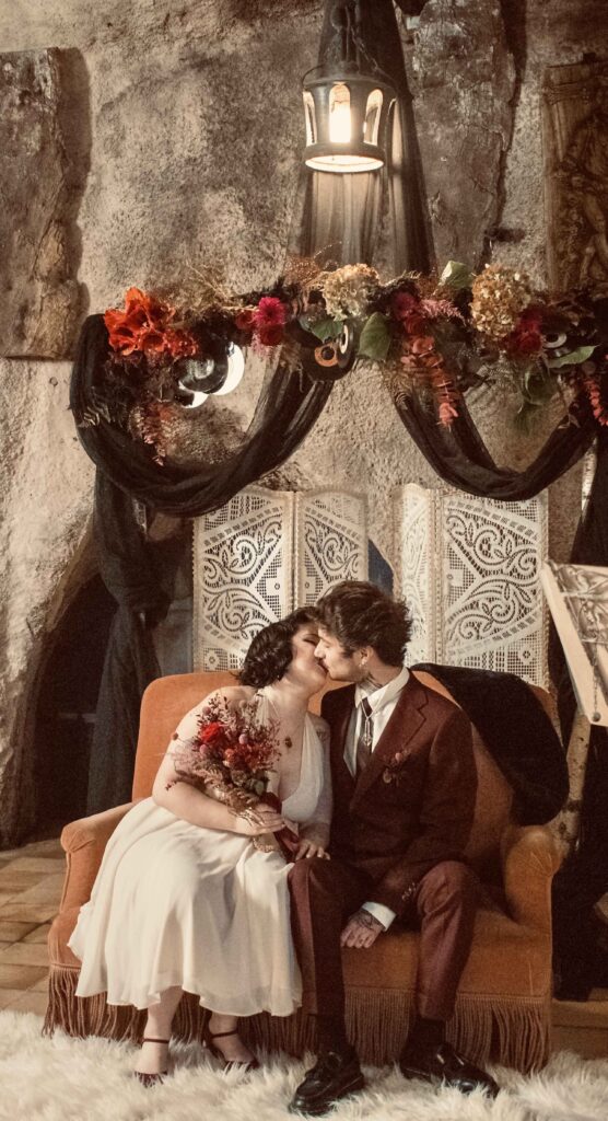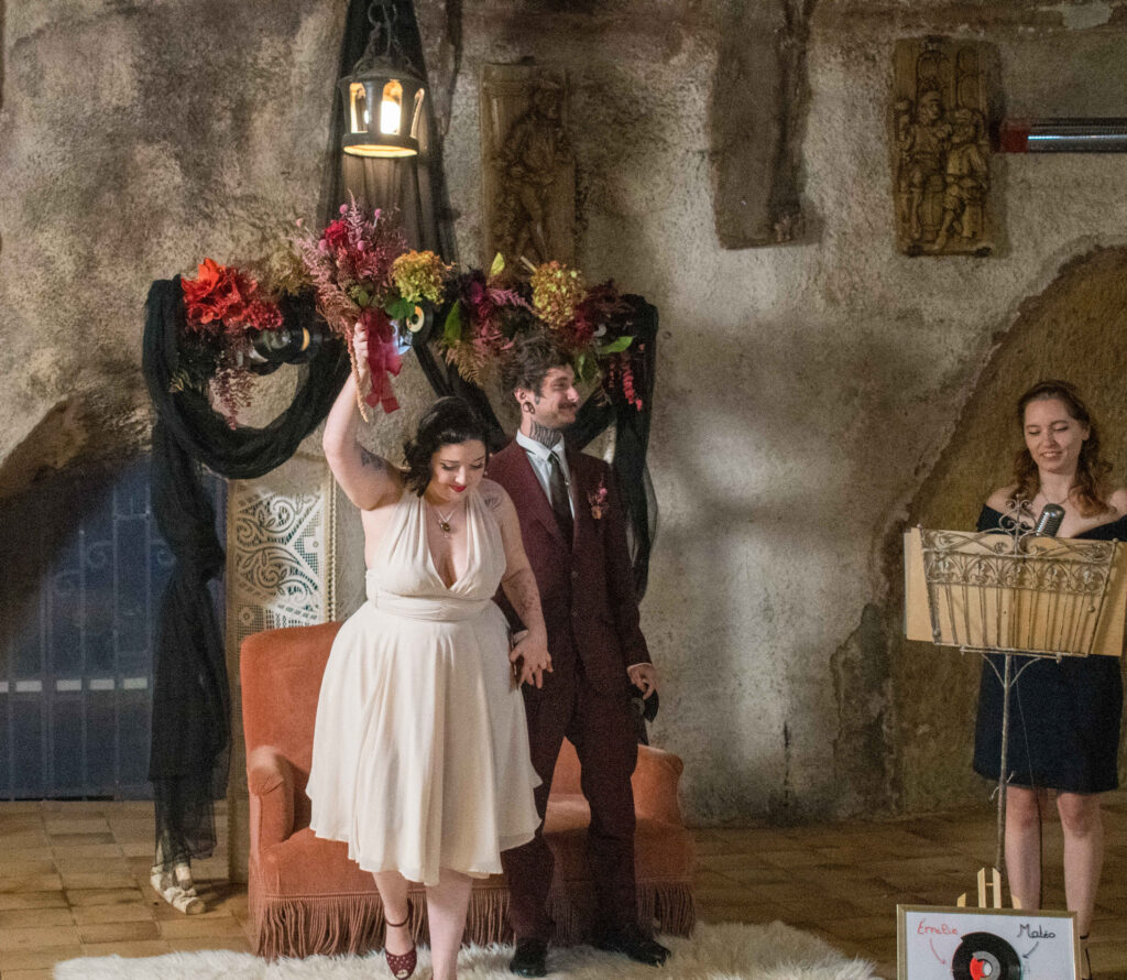 Lorsque Marie, de l’agence Amethyste Event nous a proposé de faire un shooting photo sur le thème “Rock”, nous étions plus que partantes. Et hasard du calendrier, nous avions eu un mariage rock juste avant avec de véritables mariés. Alors autant dire qu’ils nous ont inspiré et que nous avons cherché à pousser le curseur le plus loin possible.